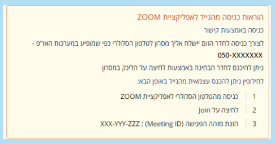 ג. התקנה של מערכת Zoom על הטלפון החכם. המצלמה צריכה להיות דלוקה לאורך כל הבחינה ואין להשתמש בתמונת רקע.(שימו לב- ההתחברות לזום באמצעות הטלפון הסלולארי בלבד).