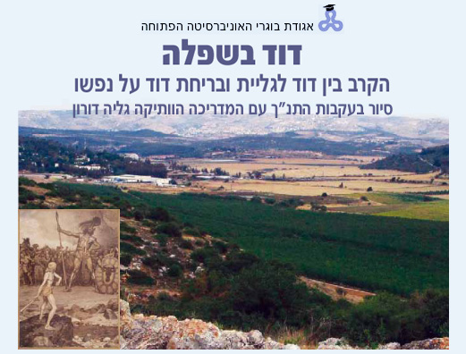 נרד בעקבות דוד לעמק האלה, במסלול הליכה יפהפה מחורבת חנות אל בית הבד, לאורך "דרך הקיסר" שנסללה לכבוד ביקורו של הקיסר הדריאנוס בארץ ישראל. נעצור לתצפית על תל שכה, נעלה לתל עזקה ושם נספר את סיפור הקרב בין דוד לגליית בעמק האלה - הדרמה של הצעיר הקטן והאמיץ אל מול הענק האימתני.