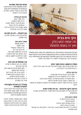 •תיקוני בנייה ,טיח ,צבע וריצוף •האם המים חדרו מבחוץ או שמדובר בתקלה בתוך הנכס