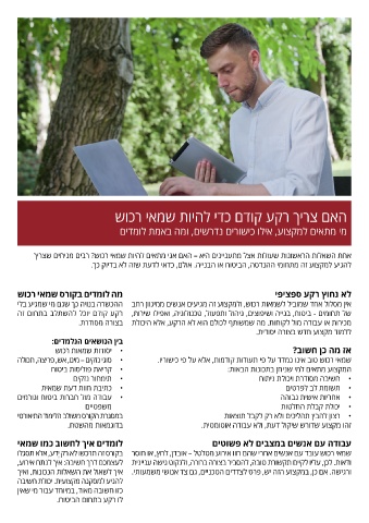 רקע קודם יוכל להשתלב בתחום זה של תחומים -ביטוח ,בנייה ושיפוצים ,ניהול ותפעול ,טכנולוגיה ,ואפילו שירות,