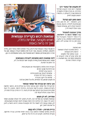 הלקוחות ,והשליטה בהכנסה .אבל ,לא כל אדם מתאים לעבודה כעצמאי .ואם בכל •כניסה מדורגת לעולם השמאות