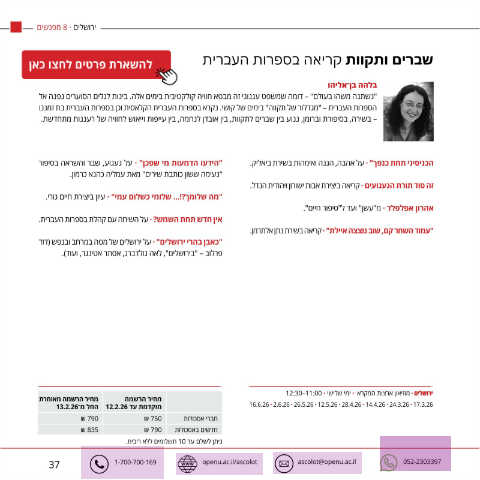 37 1-700-700-169 openu.ac.il/ascolot ascolot@openu.ac.il 052-2303397