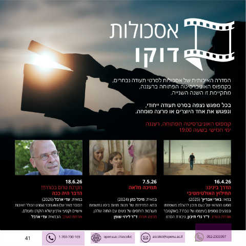 41 1-700-700-169 openu.ac.il/ascolot ascolot@openu.ac.il 052-2303397